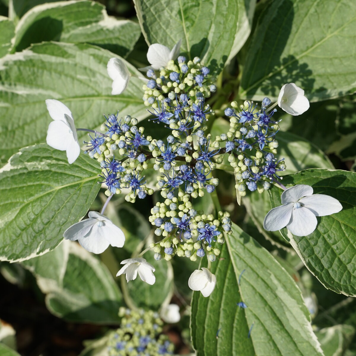 庭の額紫陽花を撮り、パソコン付属の補正ソフトで、正方形の日の丸写真にトリミングした。これまでのコンデジに比べ、明らかに明瞭である。