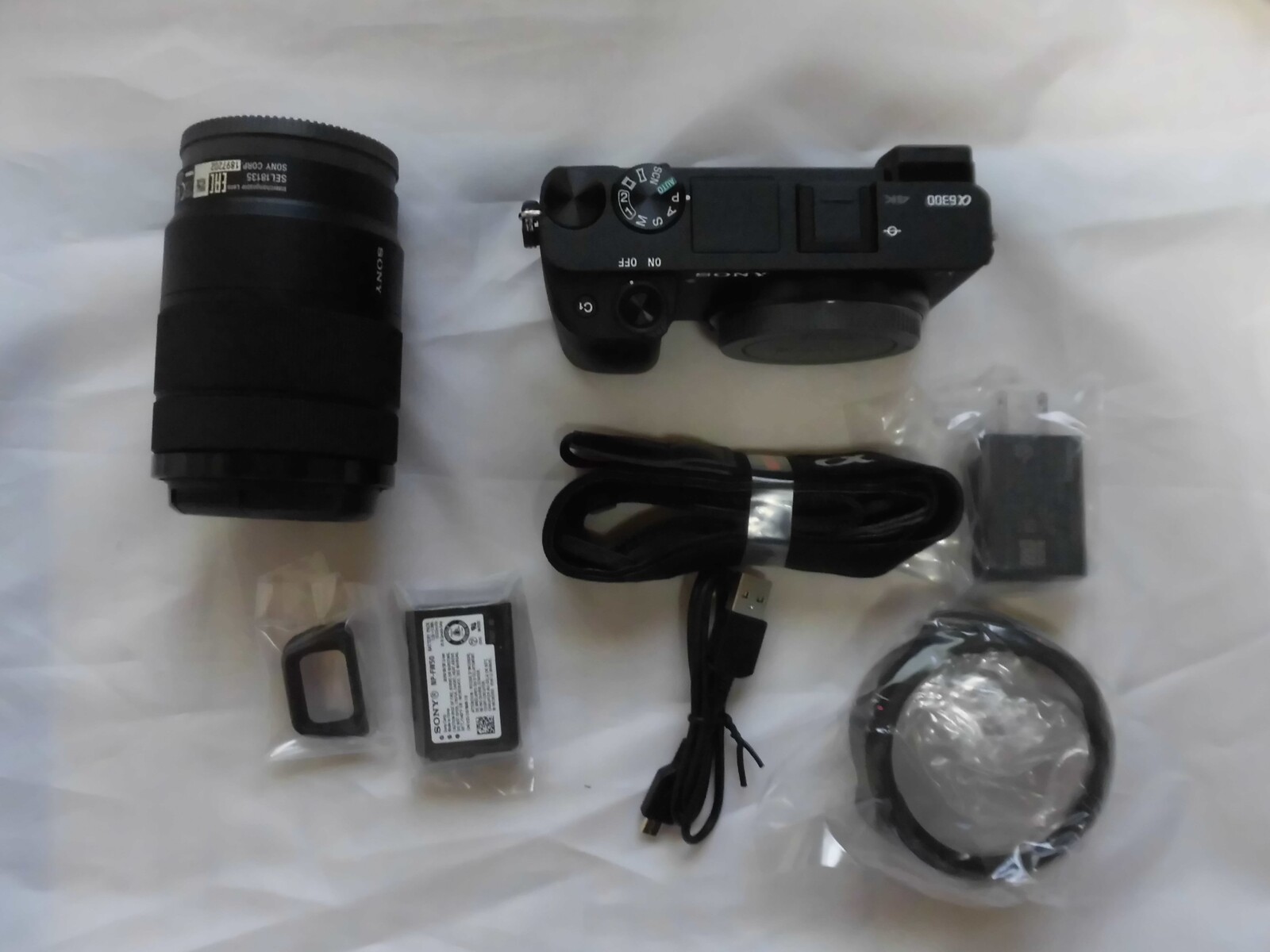 後の写真は、ストラップ、レンズ、レンズフード、バッテリーを装着し(メモリーカードは別に買い、翌日に届いた)、日時を合わせた所である。